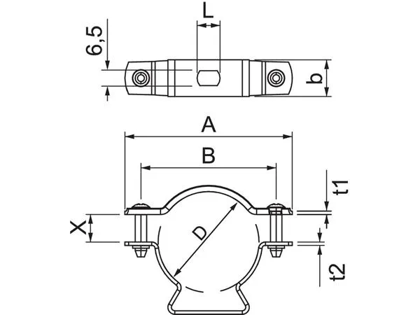 obo Bettermann Vertr afstandsspændebånd med langhul 44-53mm ASL 733 53 G. Afstandsstykker til montering af rør og kabler på væg, loft og gulv. Med selvsikrende overdel. Fastgørelse via langhul. Egnet til montering med sømapparat eller boltkoblingsapparat fra Schellenstørrelse 20. Godkendt til funktionsbevaring iht. din 4102 del 12, funktionsklasse E 30 til E 90 (undtagen alu).