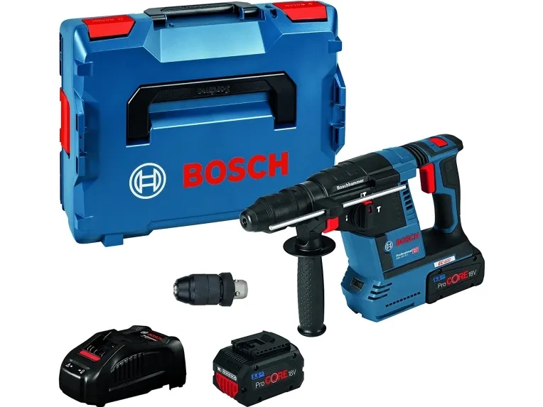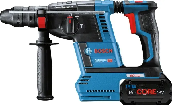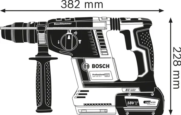 Bosch 0 611 910 00G. Chuck type: SDS Plus, Product colour: Black, Green, Motor type: Brushless motor. Drilling diameter in concrete (max): 2.6 cm, Rated speed (max): 4350 RPM, Impact energy (min): 2.6 J. Power source: Battery, Battery voltage: 18 V. Package width: 251 mm, Package depth: 398 mm, Package height: 104 mm