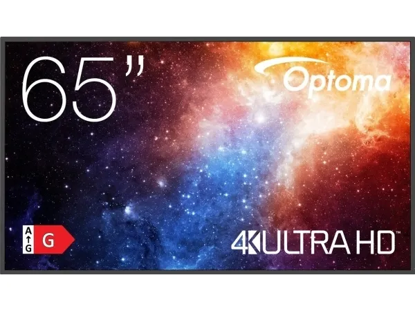 Optoma N3651K. Product design: Digital signage flat panel. Display diagonal: 165.1 cm (65"), Display technology: LED, Display resolution: 3840 x 2160 pixels, Display brightness: 450 cd/m², HD type: 4K Ultra HD. Wi-Fi. Operating hours (hours/days): 24/7. Operating system installed: Android 11. Product colour: Black