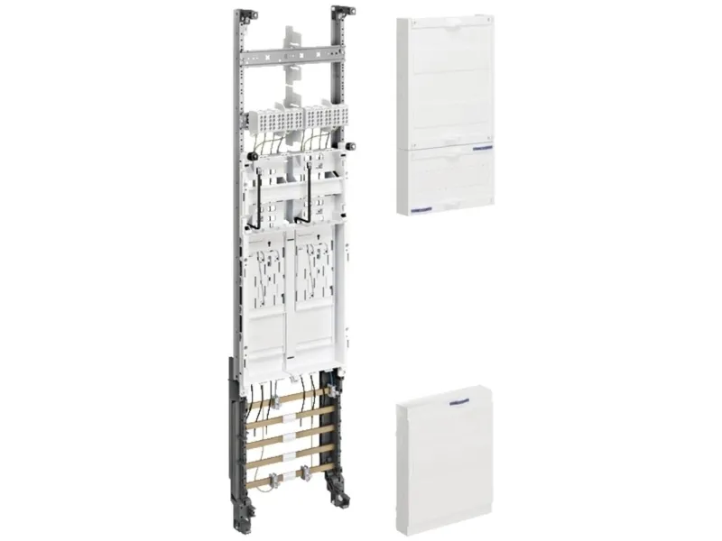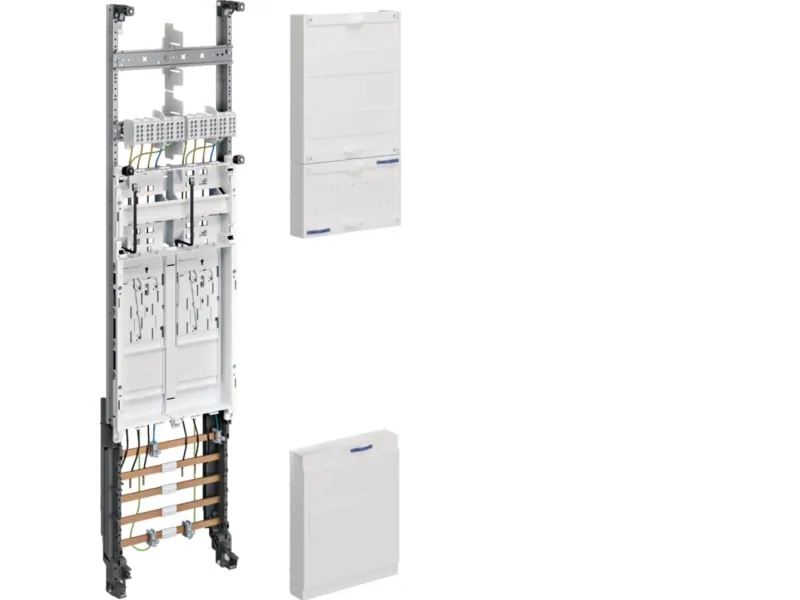 Hager ZH3EZ12N kompletfelt universel universel Z 1050mm 2ZP 1feld BKE-i OKK Komplet felt,univers Z,2 tællerpladser,BKE-i,OKK,H=1050 mm,1-felt. Tælleløsning skabskabinet iht. din VDE 0603/1, målstandard din 43 870 til overflademonteret, planmonteret eller delvist forsænket montering. Bestående af skab med dør af pulverlakeret, indadrettet, stabilt profileret 1 mm tyk stålplade. Indvendig beklædning komplet af plast. Ledningsindgange foroven og forneden via indbyggede plastflangeplader. Prægning på bagsiden af plastdelen. Samleskinnekegennemføringer som flange, der skal åbnes på begge sider, i det nedre område som mulighed for samleskinnefjernsforbindelse fra forskellige skabe eller i forbindelse med et kabeltilslutningsstik og tilslutningssæt. Ud over udførelsen i har også åbninger i området omkring AR (til højde 1100 og 1400 mm) og RFZ (til byggehøjde 1100 mm). Dør frontalt med indvendigt liggende, indstillelige hængsler, kan vælges til højre eller venstre med 110° åbningsvinkel. Lukning med fordriver. Låselukning via andre lukninger. Skab kan flanges ved siden af hinanden og over hinanden. Skabsstørrelse 1- til 5-feldrig med 72 til 540 pladsenheder (PLE). Bemærk: Hovedledningen skal i henhold til VDE-AR-N 4100:2019-04 indføres nedefra eller fra siden i tællerkabinettets nederste tilslutningsrum og tilsluttes der. Højde : __ mm (1100 mm eller 1400 mm) bredde: __ mm dybde: 205 / 160 mm, RAL-farve: 9010 beskyttelsesklasse 44, beskyttelsesklasse II mærkestrøm i samleskinnesystemet 250 A udførelse iht. VDE-AR-N 4100:2019-04 tælleranlæg til __ Skrankeplads(er). Efter de tekniske tilslutningsbetingelser (TAB) for DSO __ for: __ elektronisk husstandstæller (eHZ) eller __ tæller med 3-punktsfastgørelse (3 HZ). __ for referenceanlæg med almindeligt forbrug i hjemmet maks. 63 A (10mm²) i henhold til din 18015-1 ( __ lejligheder, __ Generelt, __ reserve, __ varmepumpe) __ til permanent anvendelse maks. 32 A (10 mm²) i henhold til VDE-AR-N 4100:2019-04 (f.eks. PV op til 22 kW) __ til anvendelse med permanent kontakt