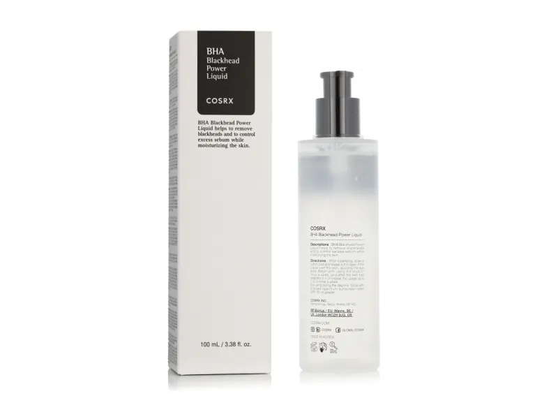 BHA Blackhead Power Liquid fra COSRX indeholder 4% BHA udvundet af pilebark (Bark Water Betaine Salicylate), der er en naturlig kilde til BHA og mildere end den kemiske udgave, så også sensitive hudtyper vil kunne drage nytte af produktets mange egenskaber. BHA udglatter hudteksturen ved at penetrerer ophobet talg og bakterier, der har ophobet sig i porerne og fører til bumser. Samtidig vil dette produkt virke dulmende på irritation og rødme, mens hyaluronsyre vil fugte huden og forebygge tørhed efter eksfoliering.