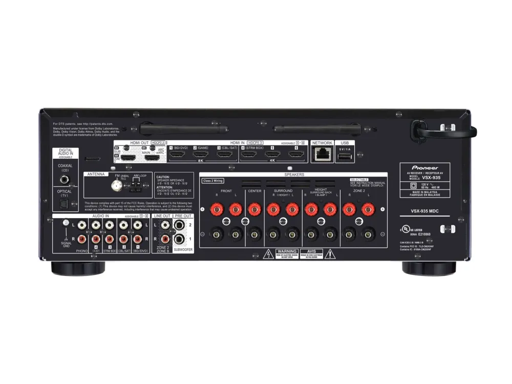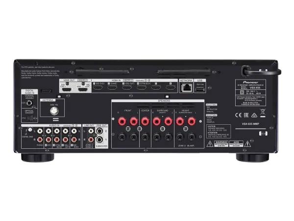 Fordyb dig i 3D-surroundlyd fra Dolby Atmos eller DTS: X. VSX-935 tilbyder livagtige billeder. Du kan streame sange fra forskellige kilder via Wi-Fi, Bluetooth og meget mere. Andre højdepunkter inkluderer en dedikeret DAC, personlige forudindstillede knapper og 2 HDMI-udgange.