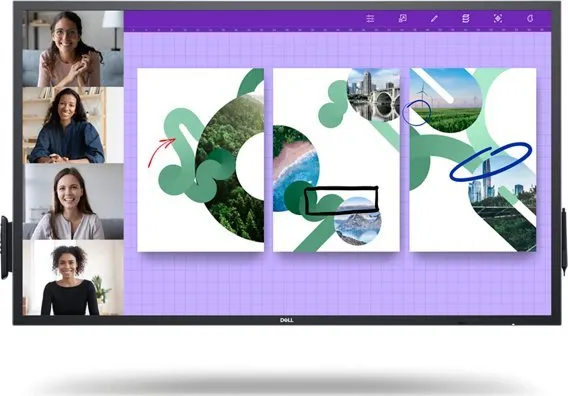 Saml teamet, uanset om de er i lokalet eller på afstand, med denne fantastiske 65" 4K UHD storformatskærm med 20-punkts touch, håndfladeafvisning, USB-C-forbindelse og indbyggede dobbelte 20 W højttalere.