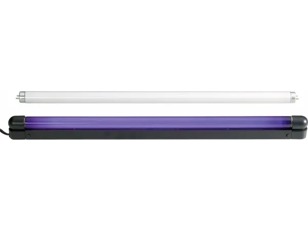 UV-lysstofrør 120 cm 36 W Det universelle lyssæt komplet med fatning og netstik! Monteres, færdig! Til diskoteker, natklubber, barer, caféer, gildesale og så videre Frit valg mellem uv-effekt eller normal lysdrift Høj uv-lysintensitet Enkel montering