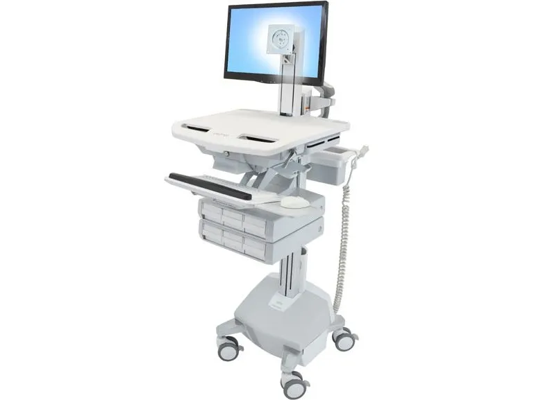 Stay productive and on the go with LiFe power system. This innovative, truly ergonomic and easy-to-maneuver healthcare cart features sit-to-stand height adjustment and an adjustable back-tilt keyboard tray. Its auto-locking drawer system enables simple and efficient management of non-controlled medication.