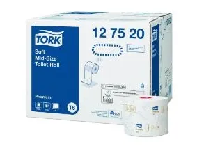 Tork Twin Mid-size dispensersystem til toiletpapir er et moderne og effektivt system, der er velegnet til toiletter med medium trafik og fokus på den gode brugeroplevelse. Det sikrer et højt niveau af effektivitet, og at der altid er toiletpapir tilgængeligt. Tork Soft Mid-size Premium Toiletpapir tilbyder et kvalitets-look med optimal funktionalitet.