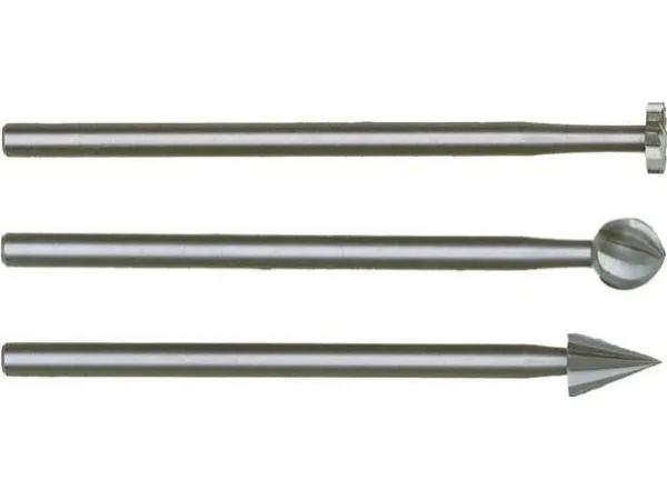 Selected tungsten vanadium steel. Purposely made of stable construction with head and shaft out of a single blank. The precise flutes and optimal concentricity ensure best life expectancy. For use on hard and soft woods, NF and precious metals, as well as plastics and plaster of paris. Ideal for milling, routing, shaping, profiling and slotting. All shanks Ø 3/32" (2.35mm). - Size 13/64"