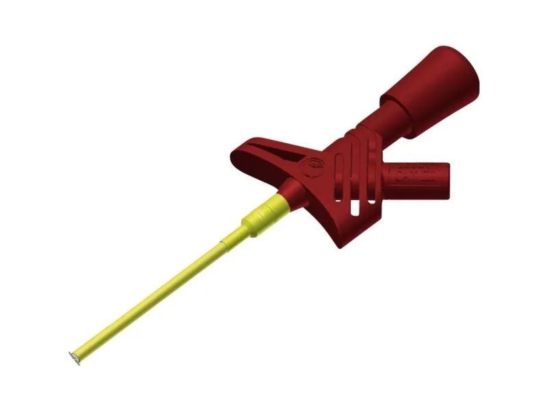 2 mm safety clamp-type test probe, grip jaws, 1000V CAT III For miniature safety applications. Clamping range up to 3 mm. Bemærk! Denne tekst er maskineoversat.