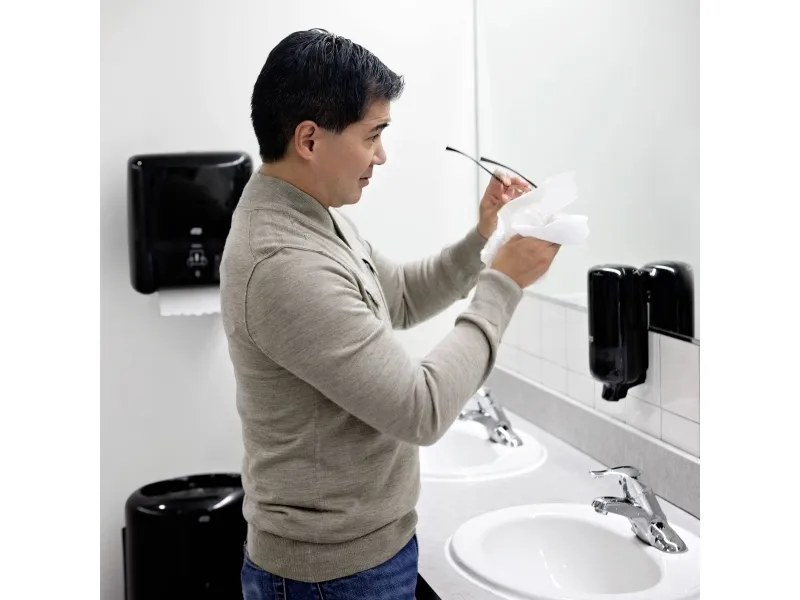 Tork Matic® Dispenser Håndklædeark i Elevation Design med nem vedligeholdelse holder travle toiletter kørende og reducerer forbruget med ét-ark-ad-gangen dispenserfunktion. Tork Elevation dispensere har et funktionelt, moderne design, der giver en følelse af høj kvalitet.