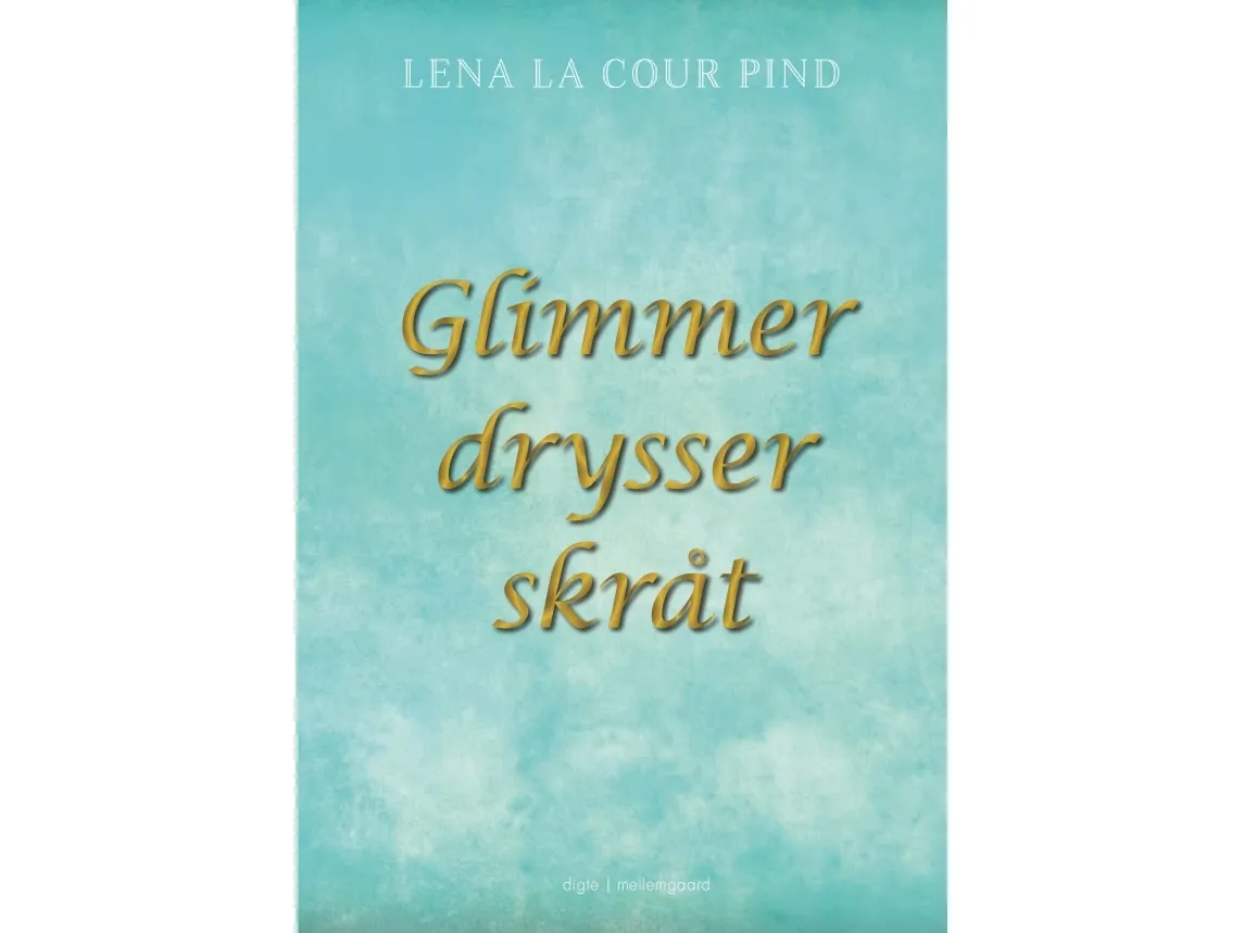 Digtene kredser om kærlighed og de fornemmelser og følelser, der følger med, når livet føles intenst med et andet menneske. Om det er et kærlighedsøjeblik kort som et strå eller et længere forhold, betyder ikke altid noget for vægten af følelser. Digtene er beregnet til at lade sig føre ind i en verden, i et lille drama af bevægelser, hvor læseren føler sig genkendt ved mødet med de universelle sindstilstande som forelskelse, nærvær, angst for at blive forladt, afstandsoplevelser, naturtilknytninger men også den simple glæde og lykke ved at mærke et andet menneske tæt på. Digtsamlingen handler i bund og grund om et menneske, som befinder sig i den sårbare situation, det er at leve som menneske, som har ”taget sine smykker af”, åbnet sine sanser og overgivet sig i mødet med omverdenen. Uddrag af bogenafstand er et savn af guldeller en form for sans?jeg dufter som nøgnejuvelkrydderier på efterladtekropsdele uden ansigtmetal og sten fra vulkaner længsel efter denne glimtenbliver et spørgsmålom graden af kærlighedglemsel ogstilhed Om forfatteren Lena la Cour Pind (f. 1970) er uddannet billedkunstpædagog med speciale i ordmalerier og har altid kredset om, hvordan ord og billeder hænger sammen. Hun arbejder ved siden af sit kunstneriske virke på et bosted i Bagsværd ved København. Glimmer drysser skråt er hendes debut.