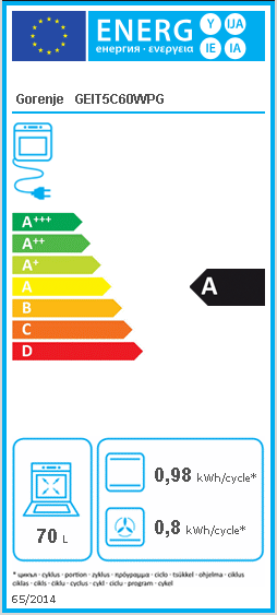 Elektrisk ovn - multifunktion - 70 liter - Klasse A