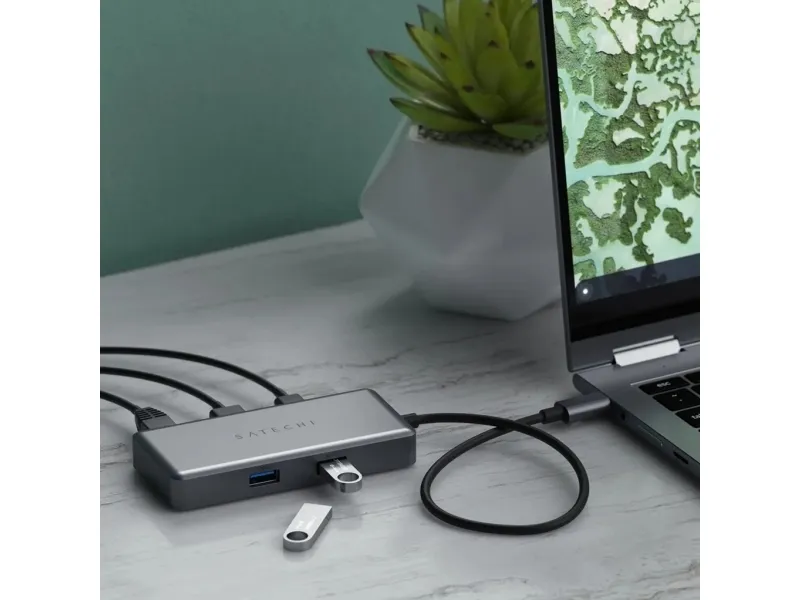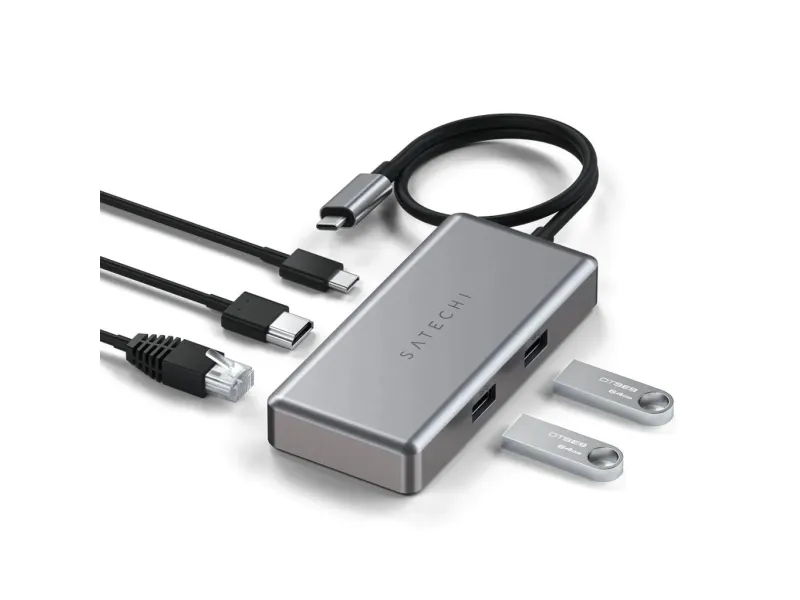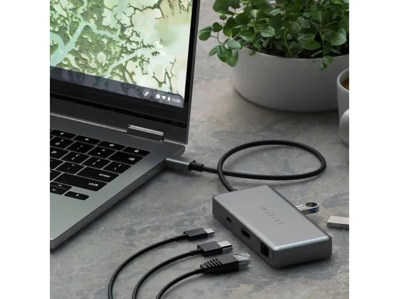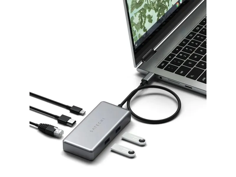 Transform your workspace with the Satechi USB-C Multiport for Chromebook. Integrating multiple ports into a single device this adapter boosts productivity and enhances connectivity.Gigabit Ethernet Port.HDMI [email protected] PD Charging up to 96W.Offers two USB 3.2 Gen1 Ports up to 5Gbps.Stylish Design in Space Grey.Gigabit Ethernet Port Stay connected at lightning-fast speed with the integrated Gigabit Ethernet port. This feature assures stable internet connectivity enhancing productivity while working studying or streaming entertainment. HDMI 4K@60Hz Enjoy crystal clear high-resolution visuals with the HDMI 4K@60Hz capability. Whether presenting a work project viewing a movie or playing games be ready for crisp and vibrant display quality. USB-C PD Charging up to 96W Keep your Chromebook and other devices powered up and ready with the USB-C PD charging feature that supports a powerful 96W. It ensures your workflow goes uninterrupted providing a reliable and efficient charging solution. Offers two USB 3.2 Gen1 Ports up to 5Gbps Experience rapid data transfer with two USB 3.2 Gen1 ports that support up to 5Gbps. Back up your data transfer files or connect peripheral devices effortlessly. Stylish Design in Space Grey Complement your workspace aesthetics with a sleek and stylish design in Space Grey. Not only is this adapter high in functionality but it also boasts a sleek design that seamlessly fits into any workspace. Package includesSatechi USB-C Multiport Adapter - Space GreyUser ManualProduct specificationsColour: Space GreyHDMI: 4K@60HzUSB-C PD charging: up to 96WUSB 3.2 Gen1 ports: up to 5 GbpsColour: Space GreyCompatibility: Chromebook 11 CB311 13 CB713 15 CB315/CB515 Chromebook 514 CB Spin 11 CP311/CP511 13 CP713 Chromebook 14 C425TA/C204MA/C204EE/C223NA/C403NA/C423NA/C523NAEthernet: Gigabit Ethernet Port