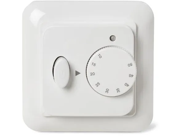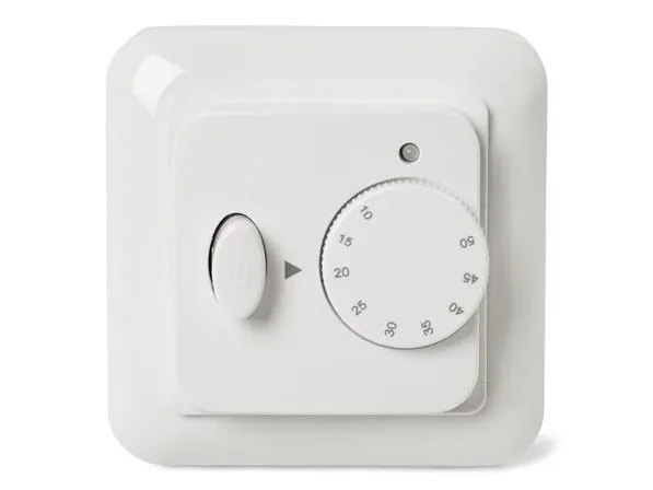 HC30-15 er en manuel betjent termostat med temperaturbegrænser, effekt regulator og lys indikator. Det er muligt at indstille termostaten til at regulere efter: den eksterne gulvføler, den indbyggede rumføler eller en kombination af de to.Den indbyggede effekt regulator kan indstilles til at afgive netop den effekt som er ønsket via drejeknappen på fronten.Ved tilslutning til ekstern timer kan termostaten sænke temperaturen 5°C om natten og dermed reducere energiforbruget.