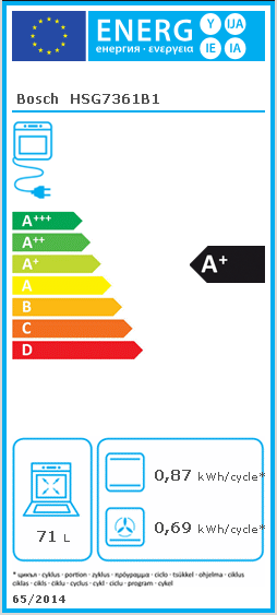 Energiforbrug per cyklus (blæserforceret konvektionstilstand)