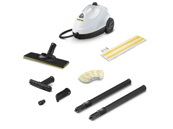Kärcher SC 2 EasyFix damprenser er en rengøringsløsning i beholderstil, der er designet til at levere effektiv rengøring på forskellige overflader. Med en tankkapacitet på 1 liter og et damptryk på 3,2 bar giver den en kraftfuld damprensning og opnår en arealydelse på 75 m2/t. Den integrerede tilbehørsopbevaring holder styr på alle redskaber, så de er let tilgængelige under rengøringsopgaverne. SC 2 EasyFix varmer op på 6,5 minutter og sikrer, at rengøringen kan begynde med det samme. Medfølgende redskaber som rundbørste, gulvmundstykke, gulvklud, håndmundstykke og EasyFix-mundstykke giver alsidighed og effektivitet, hvilket gør den ideel til at tackle skidt og snavs i forskellige områder af hjemmet. Med en ledningslængde på 4 m og præcise betjeningselementer på håndtaget kan brugerne nyde godt af problemfri manøvredygtighed og dampkontrol for tilpassede rengøringsresultater.