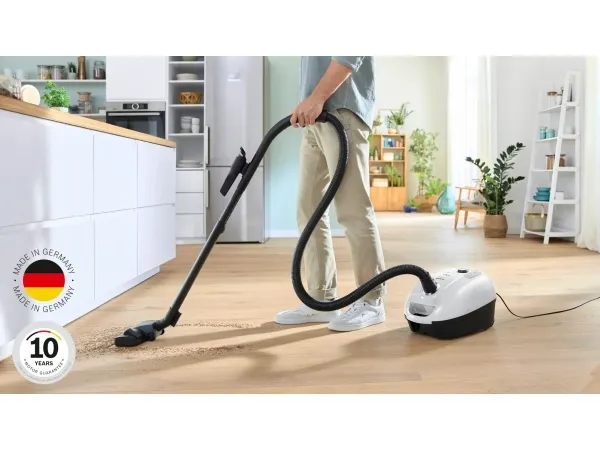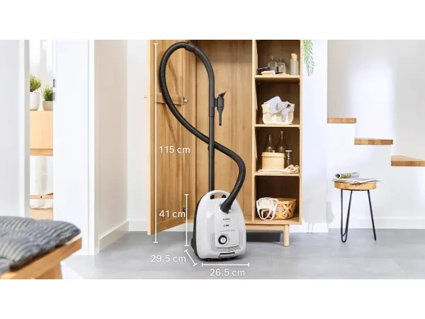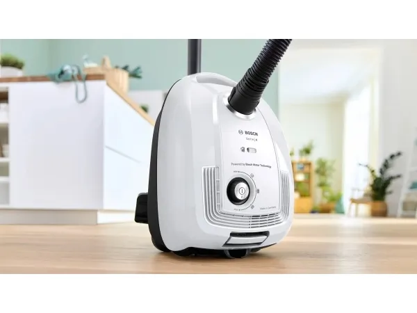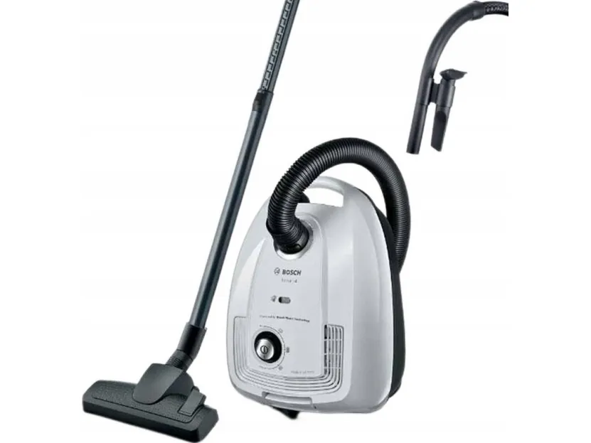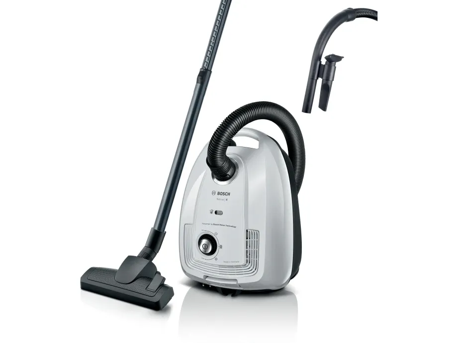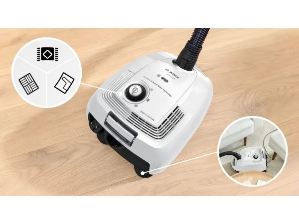 Bosch Serie 4 BGL38WH2. Maximum input power: 600 W. Type: Cylinder vacuum, Cleaning type: Dry, Dust container type: Dust bag, Dust capacity: 4 L. Vacuum air filtering: Hygiene Filter, Dirt separating method: Filtering, Noise level: 79 dB. Product colour: White