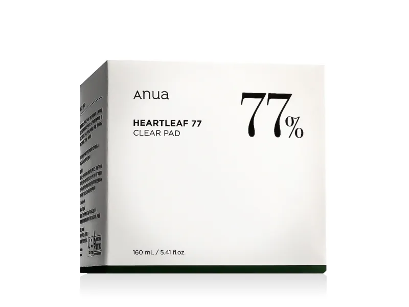 Heartleaf 77% Clear Pads fra Anua er et af deres mest elskede og virale produkter. Disse toner pads er gennemvædet i en fugtgivende, beroligende og helende væske, der er baseret på hele 77% hjerteblad-ekstrakter og er designet til at forbedre synligheden af dine porer. Vatrondellerne leverer en skånsom fysisk og kemisk eksfoliering, der fremmer cellefornyelse og efterlader din hud blød med en fornyet glød.