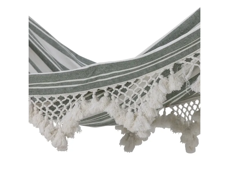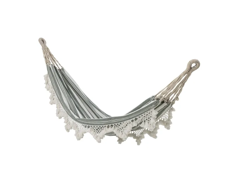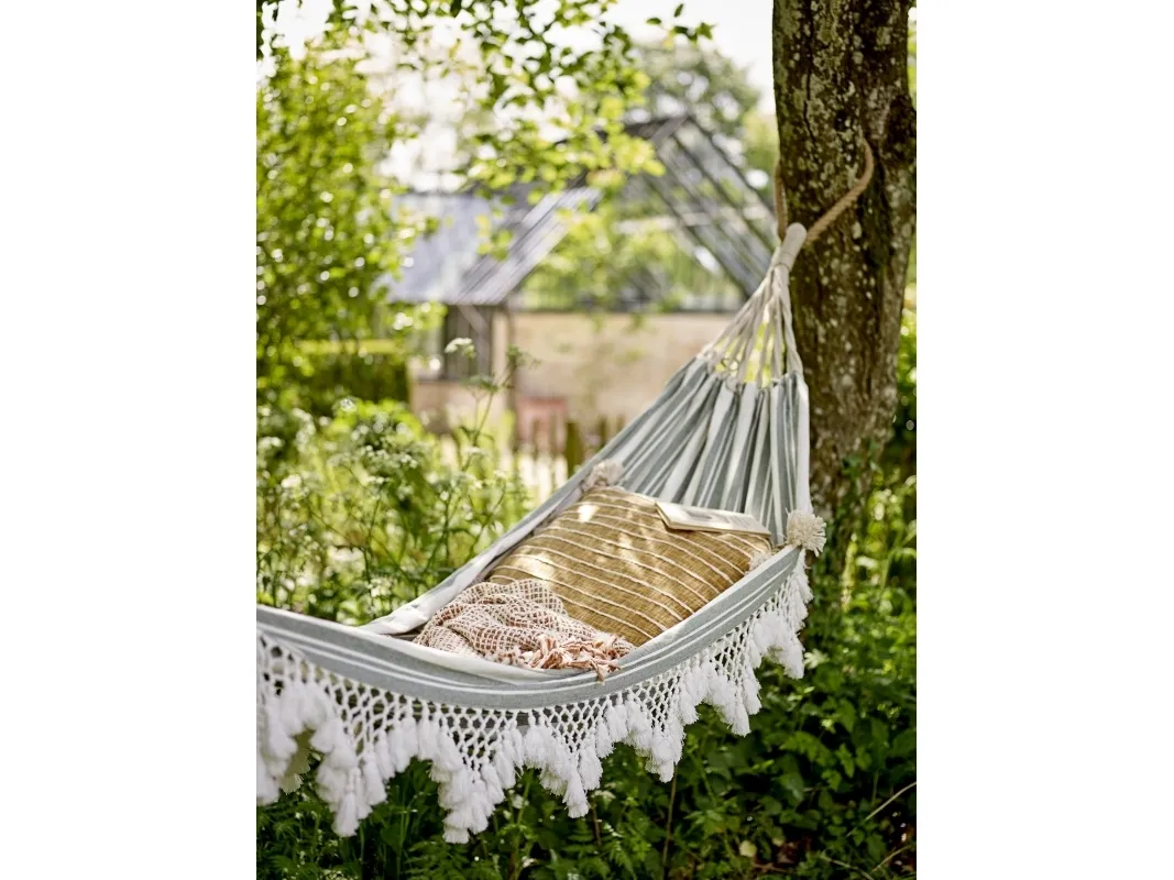 Cruz Hængekøjen fra Bloomingville er en hyggelig detalje til haven og perfekt til varme sommerdage. Hængekøjen er lavet af bomuld i en grøn nuance og små søde detaljer på siden.