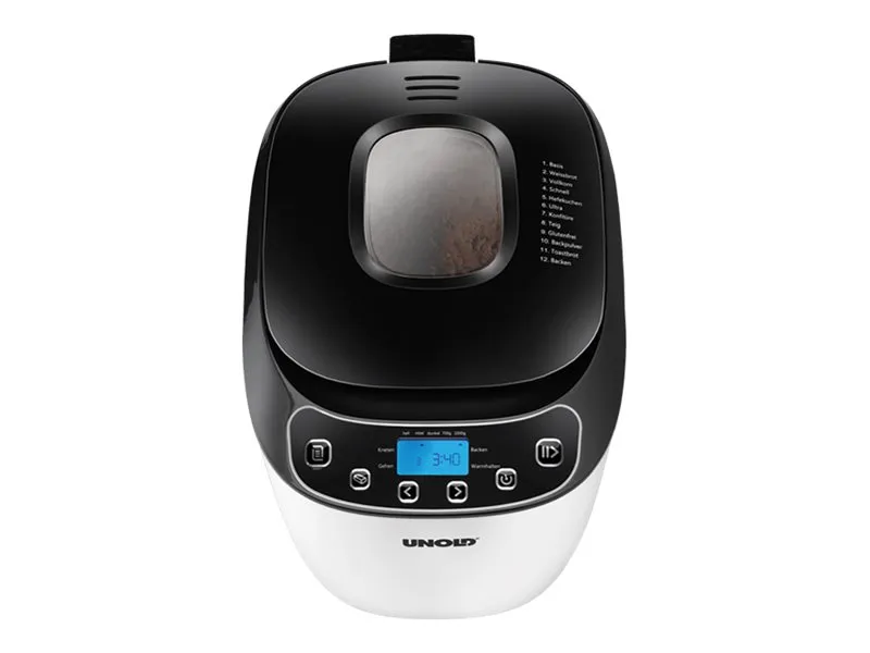 The UNOLD BACKMEISTER DESIGN 68010 breadmaker offers an easy and efficient way to bake fresh bread at home. With a robust power consumption of 550 W and a voltage range of 220 - 240 V, this breadmaker handles various tasks with ease. Choose from 12 different programs and 3 browning settings, making it suitable for diverse baking needs. Breathe easy with its BPA-free materials and enjoy safety features like a Cool Touch housing for added comfort during use.