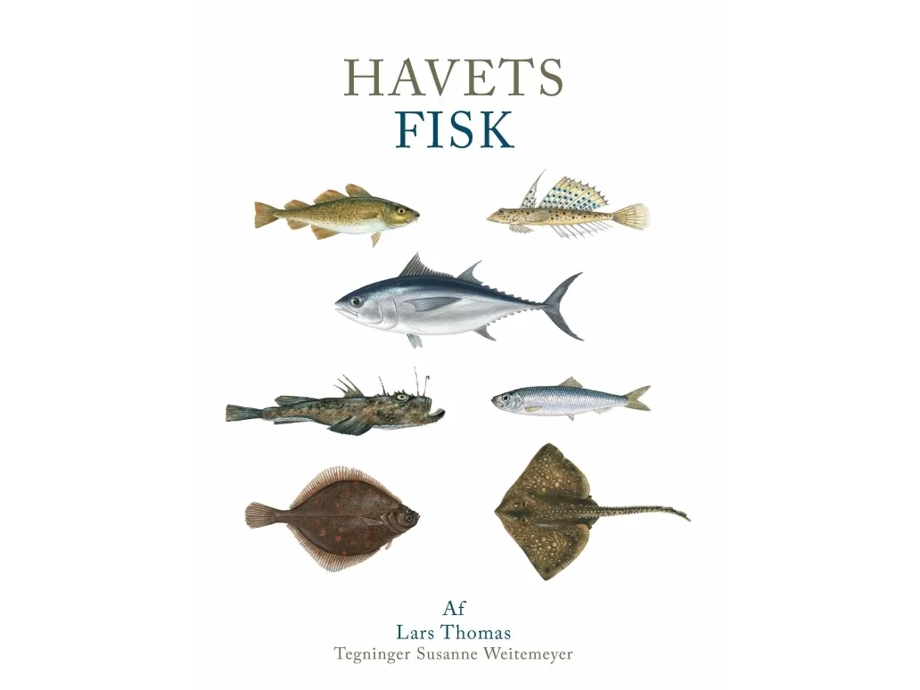Kendte og mindre kendte fisk Ud af de 35.000 fiskearter, der kendes på verdensplan, færdesomkring 200 i de danske farvande. Nogle er sjældne gæster, nogle bor her fast, og andre er begyndt at finde hertil på grund af klimaforandringerne. I denne lille bog præsenterer Lars Thomas de mest almindeligtforekommende arter i danske farvande fra fiskegrupperne: havmus, hajer, rokker, stører, ål, havål, laksefisk, sildefisk, glansfisk, sildekonger, vågmærer, torskefisk, langhaler, havtasker, multer, hornfisk, flyvefisk, beryxfisk, Sankt Petersfisk, hundestejler, nålefisk, rødfisk, knurhaner, ulkefisk, stenbidere, ringbuge, hestemakreller, muller, læbefisk, ålekvabber, langebarnfamilien, tangsprælfamilien, havkatte, tobiser, fjæsinger, fløjfisk, kutlinger, makrelfisk, sværdfisk, fladfisk, klumpfisk og rundmunde. Lars Thomas er zoolog og forfatter. Han har beskæftiget sig med mange sider af den danske natur, fra fugle til fisk, og fra snegle til insekter. Han har skrevet mere end 50 bøger om emner som koralrev, bakterier, byens dyreliv og naturfænomener. Bogen er gennemillustreret af Susanne Weitemeyer, der er uddannet på Skolen for Brugskunst og har mere end 40 årserfaring som naturillustrator.