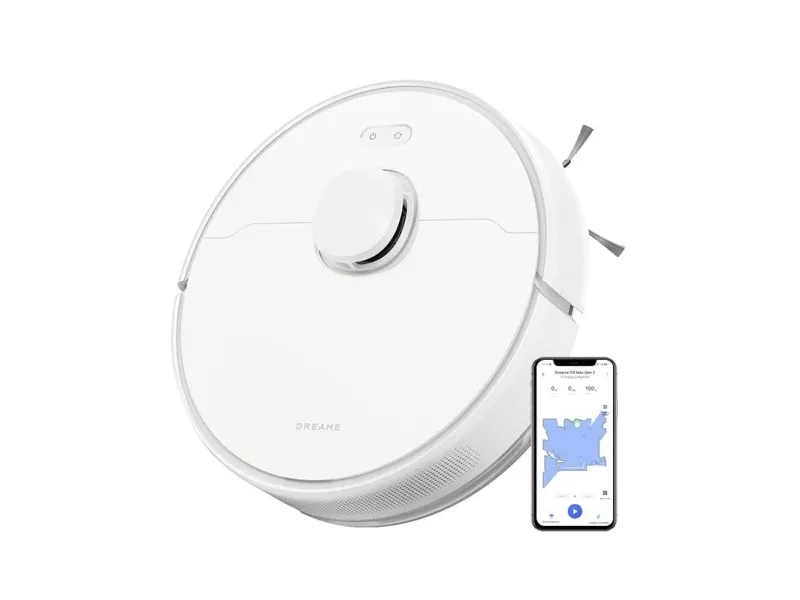 D9 Max Gen 2, equipped with a 235ml water tank and 3 water flow levels, features 6,000Pa suction and a floating rubber brush to pick up dirt from various home surfaces. Smart Pathfinder technology helps avoid obstacles.Dreame D9 Max Gen 2. Dust container type: Dust bag, Product colour: White, Shape: Round. Dust capacity (total): 0.57 L, Base station functions: Charging, Noise level: 74 dB. Battery technology: Lithium-Ion (Li-Ion), Battery capacity: 5200 mAh, Runtime: 210 min. Diameter: 35 cm, Height: 96.8 mm, Width: 406.5 mm. Package volume: 140617 cm³, Package width: 442 mm, Package depth: 374 mm