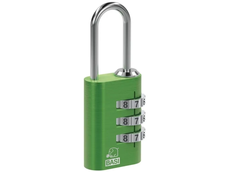 BASI kuffertlås KS 611L grøn - 6170-4000-GRØN Praktisk kuffertlås til lukning af tasker, rygsække eller kuffertSikring af bagage med 3-cifrede talkombinationer med 1.000 kombinationsmuligheder. Det praktiske kuffertlås med aluminiumskabinettet er beregnet til sikring af bagagen. Til lukning af tasker, kufferter, rygsække eller anden rejsebagage. Ikke flere nøgler - den sorte lås har en 3-cifret kombinationslås, som giver dig 1.000 forskellige muligheder for at indstille en talkombination. Fås i diverse farver: Blå, grøn, rød, sort eller sølv.