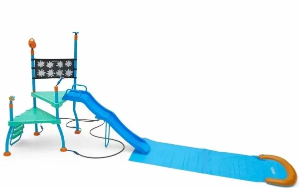 Indeholder fire forskellige vandtilbehør - en vandblaster, 3-armede og 8-mønstrede sprinklere og en bobleblæser Water reveal colouring wall, der afslører undervandsdyr, når det er vådt - og bringer læring ind i legen 6 fods vandrutsjebane og 3 m vandrutsjebane med sprinklere til at sikre fuld gennemblødning! Skridsikre legeplatforme og trin med greb og vandafledning for sikker leg Inkluderer et 4-vejs slangestykke Kan bruges til våd og tør leg året rundt, så det sjove stopper aldrig Farvelakeret og galvaniseret stålramme Nyd din helt egen badelandsoplevelse derhjemme! Plum Water Park Shower Tower er den perfekte måde at bringe spændingen fra vandlandet ind i haven. Børnene kan klatre, sprænge og rutsje, og de skal blot tilslutte en vandslange for at lade vandet strømme, så kan det sjove begynde! Størrelse: L248 x W450 x H204cm Dette vandlegecenter har fire spændende vandtilbehør, som fremmer sund, aktiv leg og hjælper børn med at udvikle deres motorik og koordination. Vandblasteren er ideel til vandkamp med vennerne eller til at øve sig i at sigte. De 8-mønstrede og 3-armede sprinklere hjælper med at holde børnene afkølede på varme solskinsdage, og bobleblæseren giver ekstra sanseleg. Børnene kan få endnu mere sjov ud af vandleg med farvemuren med vandafsløringer. Børn kan lære at genkende deres yndlingshavdyr ved at rette vandblæseren mod væggen for at afsløre undervandsdyrene, så læring bliver en del af legen. Malervæggen kan bruges med pensel og vandkande, når slangen er slukket. Når de er færdige med at lege på platformene, kan børnene suse ned ad den 2,5 meter lange vandrutsjebane og langs den 3 meter lange vandrutsjebane, der er komplet med sprinklere for at sikre en fuld gennemblødning! Dette legecenter er ideelt til både våd og tør leg og giver endeløs sjov året rundt i din have. Inkluderer en 4-vejs slangetilslutning, skridsikre legeplatforme og trin. Stålrammen er pulverlakeret og galvaniseret for ultimativ beskyttelse mod rust. Maks. brugervægt 50 kg pr. platform Minimum brugeralder 3 år Kun til udendørs brug Kun til privatbrug Sørg for en sikkerhedsafstand på 2 m Ikke egnet til børn under 36 måneder - små dele - faldrisiko Voksenopsyn er påkrævet på alle tidspunkter Samling af voksne påkrævet Produkterne kan variere en smule fra de viste billeder