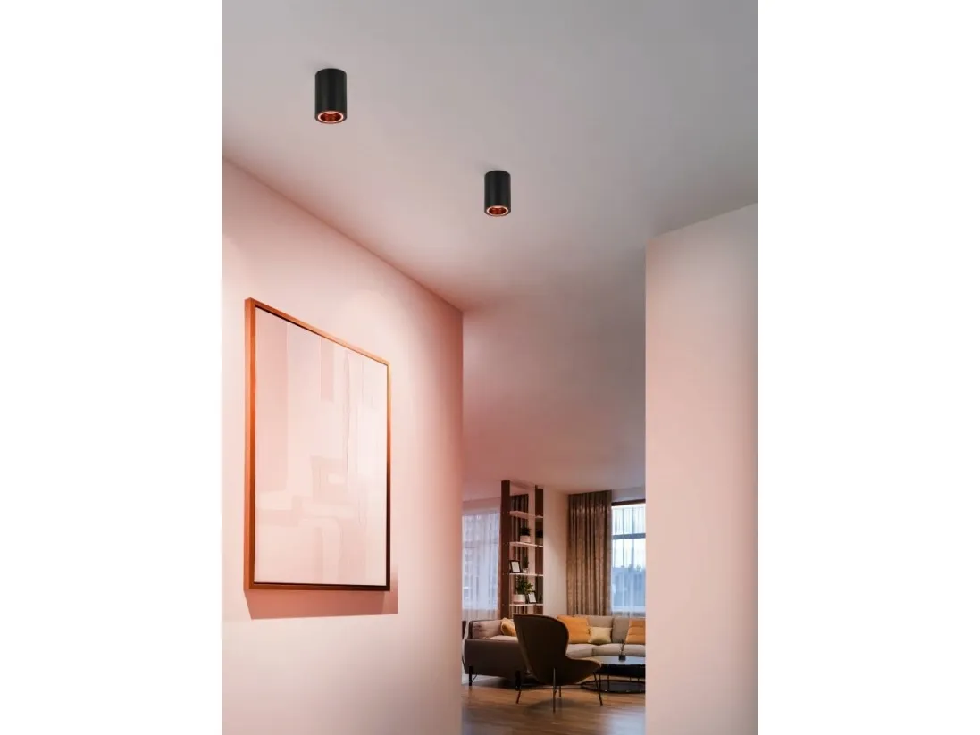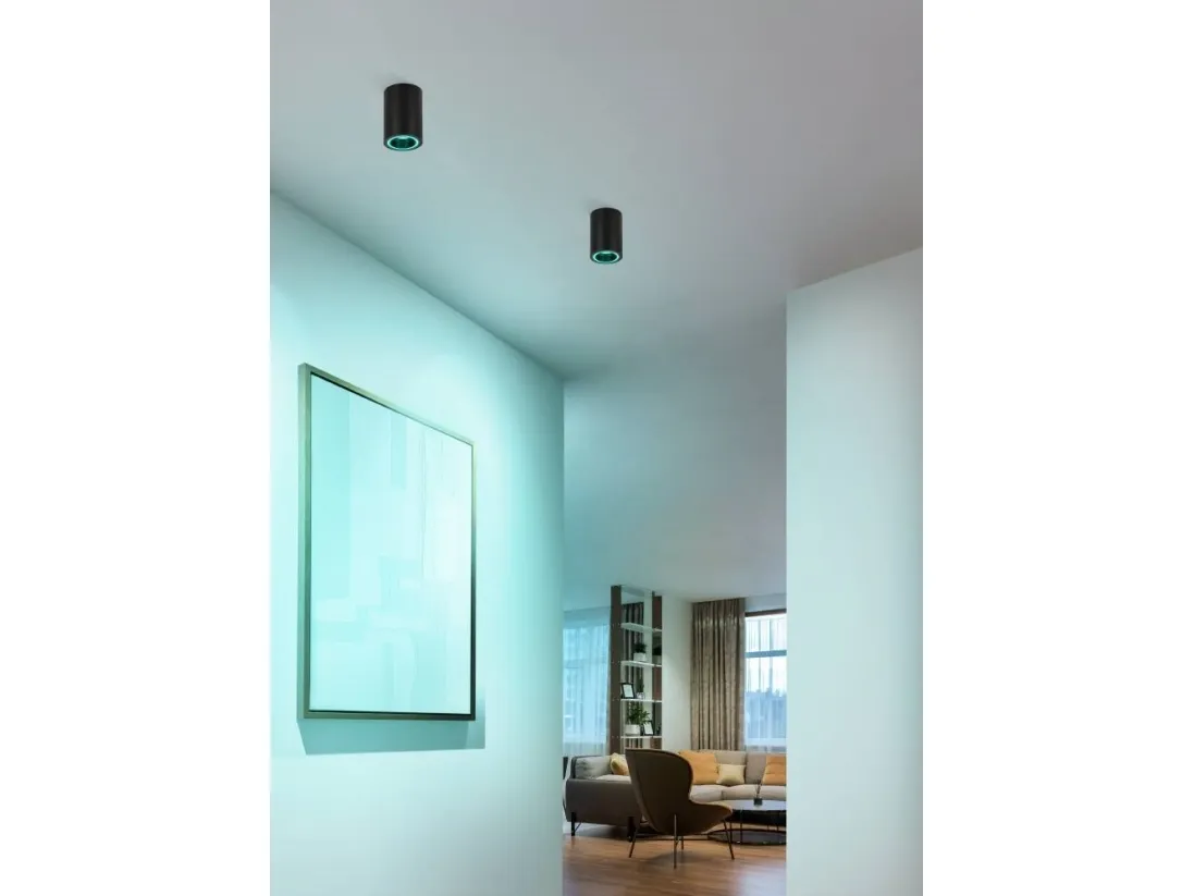 Dette unikke smart connect.z Carosso påbygningsspot leveres i et klassisk moderne design. Spottet er udarbejdet i et elegant cylinderformet design i sort med en nylon ring i bunden, der giver lampens skær et unikt udtryk. Spottet er produceret i aluminium. Den har en højde på 12 cm, og en diameter på 8 cm. Spottet leveres i et moderne design med en energibesparende GU10 lyskilde, der har et energiforbrug på kun 4,9 watt. Spottet har en behagelig lysstyrke på 345 lumen, der kan justeres i 16 millioner forskellige RGB farver og hvide nuancer fra 2700-6500 kelvin for at opnå det perfekte lys til dit behov. Med beskyttelsesklasse IP20 er lampen både elegant og sikkert designet til ethvert hjem. Lampen indeholder en lyskilde med energieffektivitetsklasse: E. Carosso-z findes også i hvid.