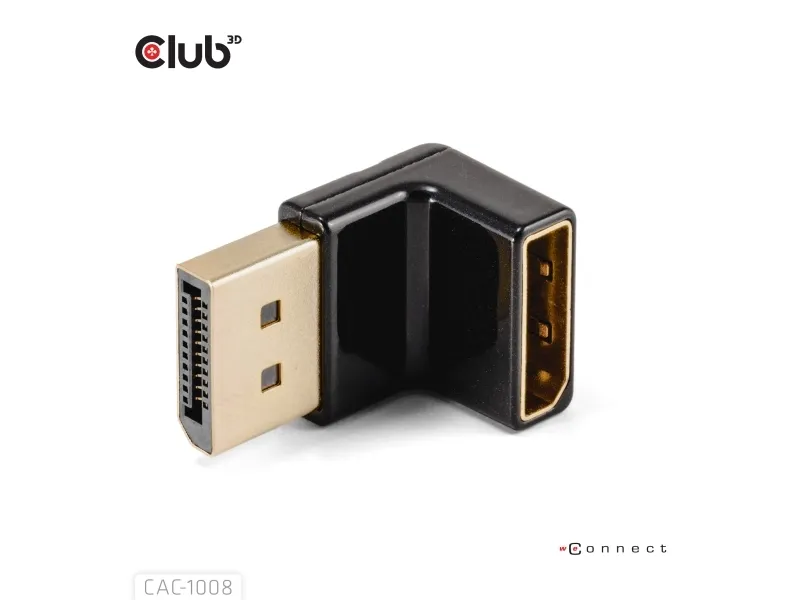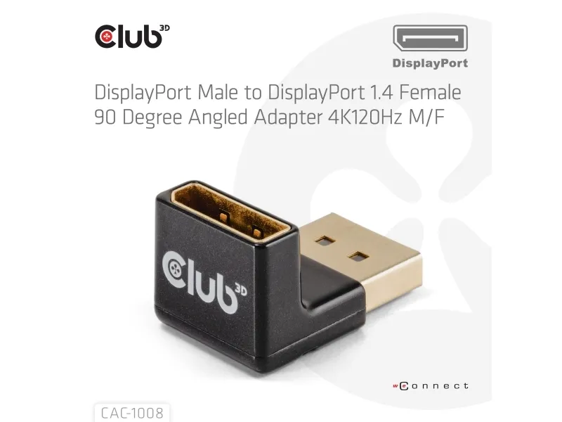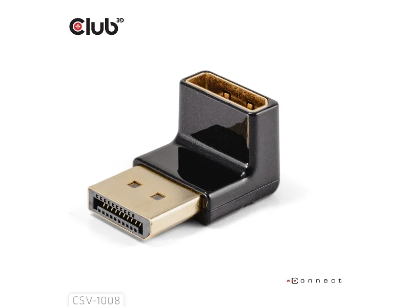 Club 3D - DisplayPort adapter - DisplayPort (han) til DisplayPort (hun) vinklet - DisplayPort 1.4 - 4K120 Hz support, op til 16,2 Gbps datatransferhastighed