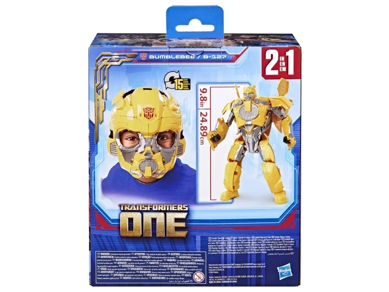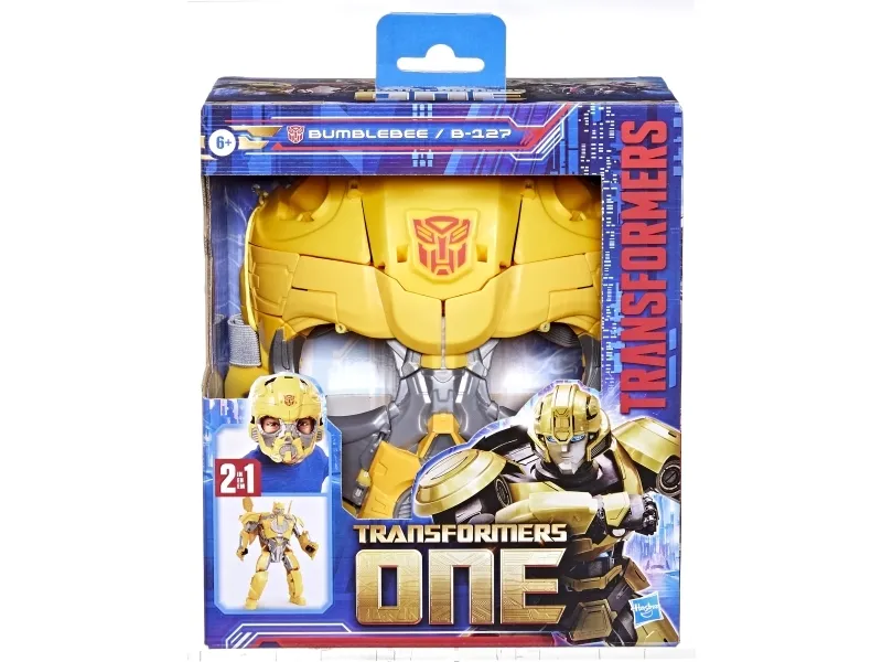 Experience the epic origins of legendary Transformers robots with this Transformers One Prime Changer Bumblebee/B-127 action figure! This 9.8-inch (24.89 cm) Bumblebee/B-127 figure converts from robot to mask mode in 15 steps. Kids can wear the mask and imagine themselves in awesome adventures in the Transformers universe. The figure is inspired by the iconic character from the Transformers movie, Transformers One. Movie-inspired Interactive toys like this Bumblebee/B-127 toy make cool gifts for boys and girls ages 6 and up. Transformers One is the untold origin story of Optimus Prime and Megatron, once friends bonded like brothers, who changed the fate of Cybertron forever. Transformers One 2 in 1 Bumblebee B-127 Mask Action Figure. Product type: Face mask, Recommended age group: Child, Recommended age (min): 6 yr(s), Genre: Movie, Theme: Transformers. Quantity per pack: 1 pc(s)
