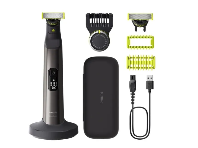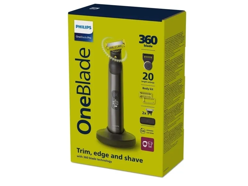 The Philips OneBlade Pro 360 QP6652 is designed for versatile hair removal, suitable for use on both face and body. This shaver features an ergonomic design and is fully washable for easy maintenance. With an operating autonomy of 120 minutes, it offers the convenience of both wet and dry usage, allowing for a customizable grooming experience based on personal preference. The LED display provides clear indicators for battery level and travel lock, ensuring that users are always informed of the device’s status. Included with the OneBlade Pro 360 are essential accessories like a travel case, a 3 mm comb attachment, and a precision comb adjustable from 0.4 mm to 10 mm, offering styling possibilities. Powered by a lithium-ion battery, it reaches a full charge in just 1 hour, making it a practical choice for those on the go. With compatibility for various replacement heads, this device is built for longevity and performance.