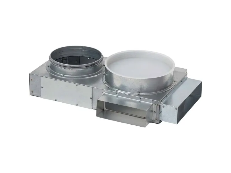 Helios fordelerboks 4 x NW 4xNW150 + 1xNW 200 FK-FK Planforsænket kanalsystem af galvaniseret stålplade i flad konstruktion og stiv konstruktion, korrosionsbestandig og ikke brændbar. Forbindelser finder sted ved hjælp af udvendige forbindelsesmuffer, derved helt glatte indervægge, lav strømningsmodstand og lav smudsudledning. For volumenstrømme op til 140 m³/h.