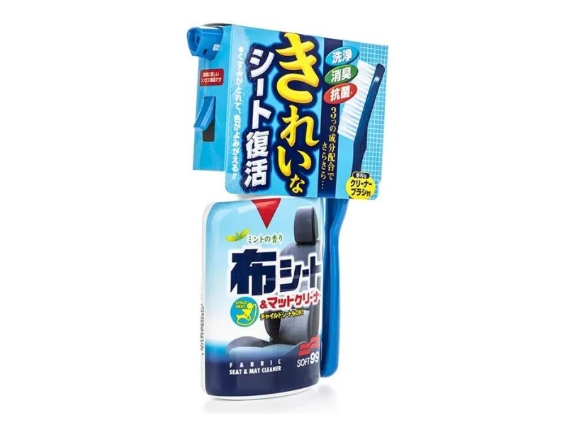 Soft99 New Fabric sæderengøring - 400 mlPræparatet har ikke kun rengøringsegenskaber, men dræber også bakterier og fjerner ubehagelige lugte. Det fjerner både det snavs og de ubehagelige lugte, der er rodfæstet i stoffet og holder det samtidig rent i lang tid.Det kan også bruges til at rengøre børnesæder. En særlig børste er inkluderet i sættet.Anvendelse:Ryst godt, og sprøjt det beskidte sted fra en højde på ca. 20 cm.Lad tørre i 1-2 minutter, og rengør derefter med den specielle børste, der følger med kittet.Aftør den rene overflade med en tør klud.Lad tørre.