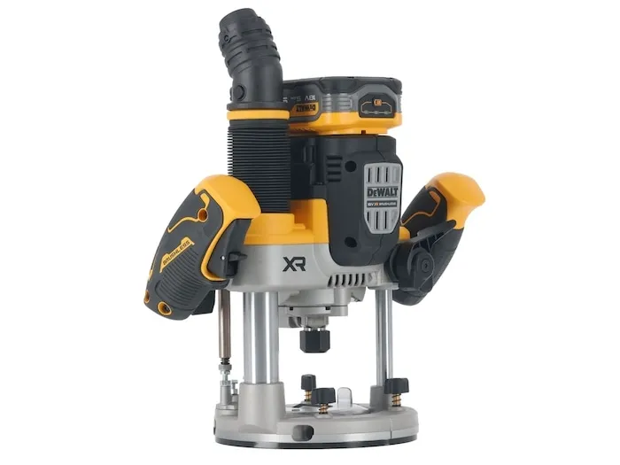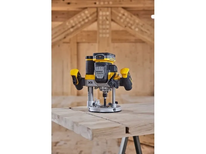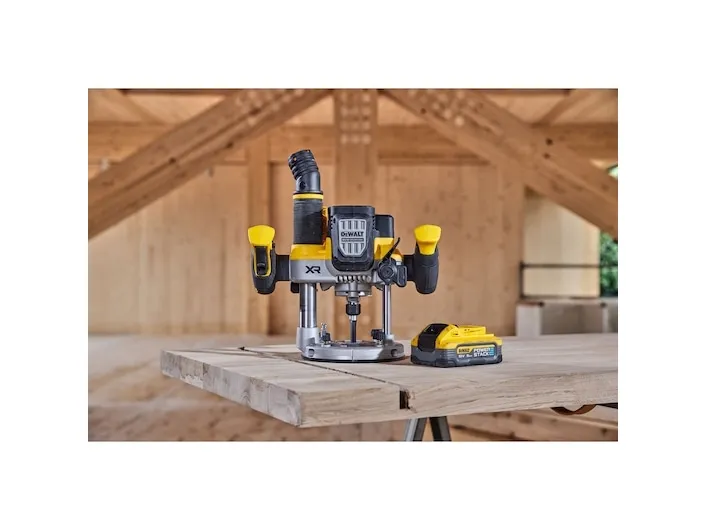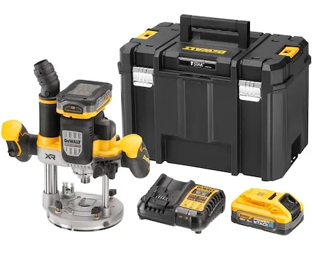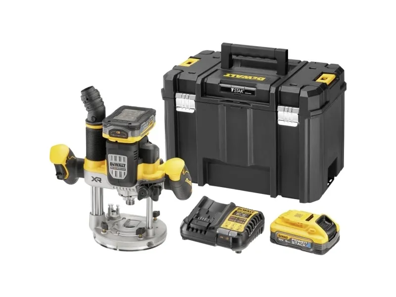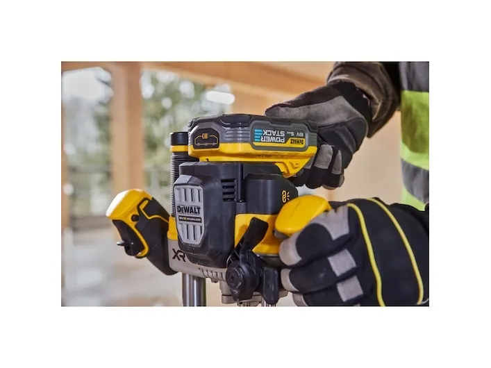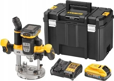 Batteri-overfræser, 18 V / 5 Ah Kraftig motor med over 1.600 watt udgangseffekt Forindstilling af hastighed fra 11.000 til 23.000 omdrejninger Elektronisk konstant omdrejningstal garanterer ensartet fræsebillede også under belastning Ergonomisk greb med 2-finger kontakt og lås til kontinuerlig drift Blød start forhindrer, at maskinen løber, når den startes Perform & Protect: Anti-Rotations-systemet stopper maskinen ved en kickback Overbelastning advarsel: LED med optisk signal ved en mulig overbelastning Lås til dybdeindstilling samt dybdejustering Tre-trins revolver-anslag til serie-fræsning Parallelanslag med finjustering 2 effektive, hvide LED-lamper med optimalt udretning af lyskegle Spindellås til nem og hurtig udskiftning af fræser Effektiv støvudsugning med Air-Lock-kompatibel adapter til udsugning Indsættelig undergulvs-udsugningsstuds til kantfræsearbejder Som standard med 2 x 5Ah Powerstack-batterier Meget kompakte mål og reduceret vægt ved anvendelse af innovativ Pouch-batteriteknologi Cellernes lavere indvendige modstande giver en mere effektiv strøm og dermed en betydeligt højere kraftudfoldelse ved visse anvendelser Længere levetid og dermed større antal opladningscyklusser takket være bedre mulighed for varmeafledning som følge af den brede, plane, udvendige form af cellerne Universelt kompatibel med alle 18 volt XR-maskiner og -opladere