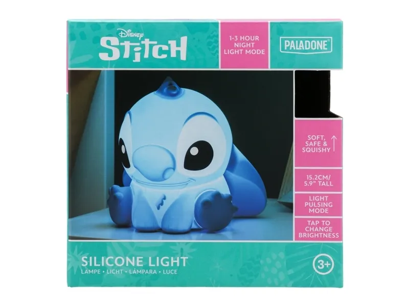 The Paladone Stitch night light adds a fun and whimsical touch to any bedroom or shelf. This accessory features a rechargeable battery, eliminating the need for batteries. With three adjustable brightness levels, it allows for customizable lighting according to personal preference, perfect for creating a cozy atmosphere or a soothing night-time environment. The auto power-off feature ensures safety and energy efficiency, providing peace of mind during use. Made from silicone, this night light is durable and adds a soft aesthetic appeal to the space.