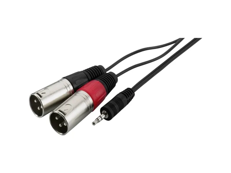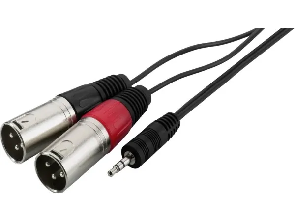 MCA-129P audio-adapterkabel, 1 m. Anvendelsesformål: Audio Adapter Armaturer 2 x 3-polet XLR-stik,;1 x 3,5 -mm-stereo-jackstik Længde: 1 m Farve: Sort Antal ledere: 2 Afskærmning: Ja Vægt: 82 g Audio-adapterkabel Til tilslutning af for eksempel et pc-lydkort til en mikserpult eller forstærker 1 x 3,5 mm stereo jack-stik på 2 x XLR-stik, længde 1 m.