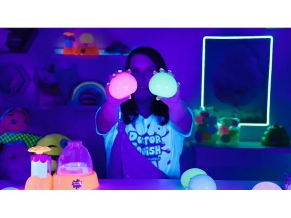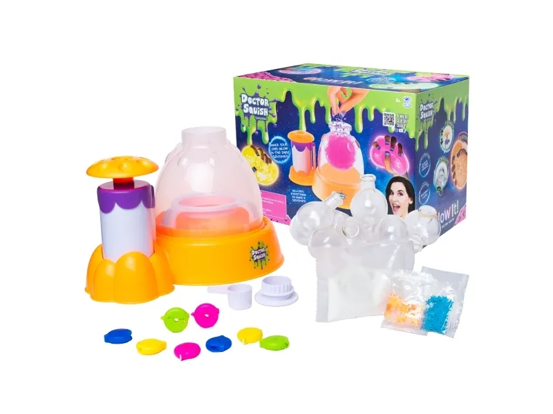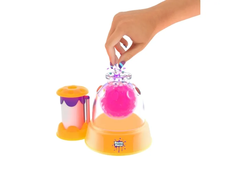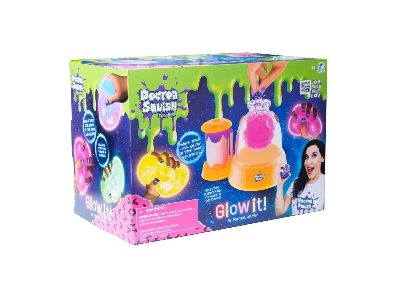 Doctor Squish elsker at finde det bedste squishy legetøj og se, hvad der er indeni! Hun kan godt lide at lave sine egne squishies og alt, der kan klemmes på. Med Squishy Neon Maker maskinen kan du nu også lave dine egne squishies, som lyser i mørke. Du skal bare tilsætte dekoration og slimpulver og derefter fylde op med vand. Du kan vælge at bruge, hvad der følger med maskinen, men du kan også anvende din egen dekoration. Fra 8 år. Inkluderer: - Squishy Neon Maker maskine - 1 ske - 1 selvlysende slimpulver - 8 gennemsigtige balloner - 2 x selvlysende glimmer - 8 genanvendelige farvede klips - 1 brugsanvisning