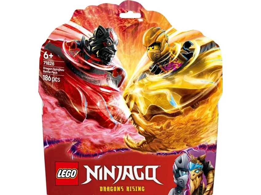 Med det actionfyldte legetøjssæt Drage-Spinjitzu Battle Pack (71826) kan drenge og piger fra 6 år udspille seje actionscener fra sæson 3 af tv-serien NINJAGO®: Dragerne vågner. Det lille LEGO® samlesæt indeholder et kamparena-tempel, 2 minifigurer af Arin og Ras og 2 drage-Spinjitzu-spinnere, som børn kan anbringe i affyrerne og skyde afsted i snurrende kampe mod hinanden. Børn kan nyde fantastiske eventyr med rolleleg, når de iscenesætter opgør mellem det gode og det onde med Arins gule spinner og Ras' røde spinner, som begge har aftagelige kraftelementer. NINJAGO-figurerne kan opgradere deres spinnere med gyldne elementer, som de kan vinde ved at ramme kamparenaen og få den til at styrte sammen. LEGO NINJAGO sortimentet af byggesæt (sælges separat) og byggelegetøj med kamptema til børn omfatter mech-robotter, drager og fartøjer, så fans kan udspille sej ninja-action. Hvert legesæt kan samles med LEGO Builder appen, som guider dig og dit barn på et nemt og intuitivt byggeeventyr.