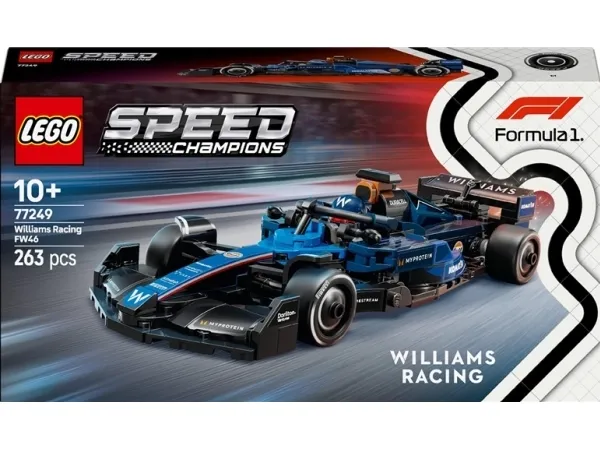 Den fartfyldte spænding fra Formel 1-racerløb venter drenge og piger fra 10 år med LEGO® Speed Champions legetøjskøretøjet Williams Racing FW46 F1®-racerbil (77249). Børn og voksne bilsamlere kan bygge, udstille og lege racerløb med en model af en F1-racerbil, som har designdetaljer fra virkelighedens udgave, der kørte med i Formel 1-sæsonen 2024. F1-modelbilen har cockpit, der åbnes ved at løfte sikkerhedsbøjlen, bagvinge, wishbone-affjedring, sponsorklistermærker og bredere bagdæk påtrykt "Pirelli". Byggemodellen af en F1-bil indeholder også en minifigur af en kører iført Williams Racing-dragt og hjelm med vinge. Anbring køreren i cockpittet. Med LEGO Speed Champions sæt kan børn og racerfans bygge modeller af nogle af verdens mest ikoniske køretøjer, heriblandt andre F1-biler (sælges separat) fra mesterskabssæsonen 2024. Hvert legesæt med biler kan bygges ud fra den trykte byggevejledning eller LEGO Builder appen, der guider dig og dit barn på et fornøjeligt byggeeventyr.