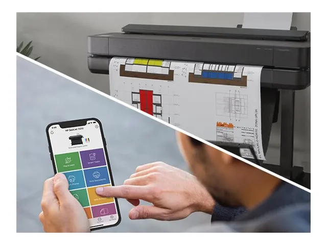 Focus on the project, not your plotter. This printer delivers incredible ease of use with HP Click Print solutions. It's responsibly designed to help you save energy and reduce plastics use. Plus, it's compact and adaptable-to fit the way you work.