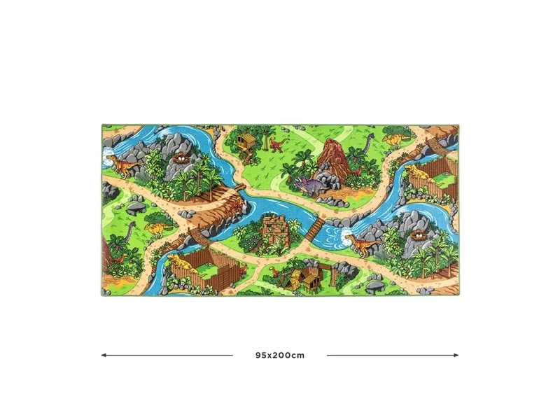 Træd ind i en forhistorisk verden med Rebel Roads Dino Legetæppe! Dette farverige og detaljerede tæppe bringer et spændende dinosaur-univers til live med vulkaner, floder, og eksotiske omgivelser – perfekt til at inspirere dit barns fantasi og eventyrlyst. Ideelt til børneværelset eller legerummet for at skabe en sjov og lærerig atmosfære. Overfladen på legetæppet er lavet af polyamid, mens undersiden er udstyret med skridsikker latex, hvilket sikrer, at tæppet bliver liggende stabilt under leg. Det er nemt at rengøre med en støvsuger og en fugtig klud. Giv dit barn et eventyr i deres eget værelse med Rebel Roads Dino Legetæppe! Mål: 95 x 200 cm. Kendetegn ved REBEL ROADS børnetæpper: • Glade farver og mønstre, der opmuntrer til leg; • Holdbarhed takket være løkkevævning og nylongarn; • Skridsikker bund lavet af latex; • Nem daglig vedligeholdelse, lav luv gør støvsugning lettere og forstyrrer ikke rengøringsrobotter; • Har OEKO-TEX-certifikat, der bekræfter, at produktet er sikkert for både brugere og miljøet; • Egnet til gulvvarme. • Produceret i Europa