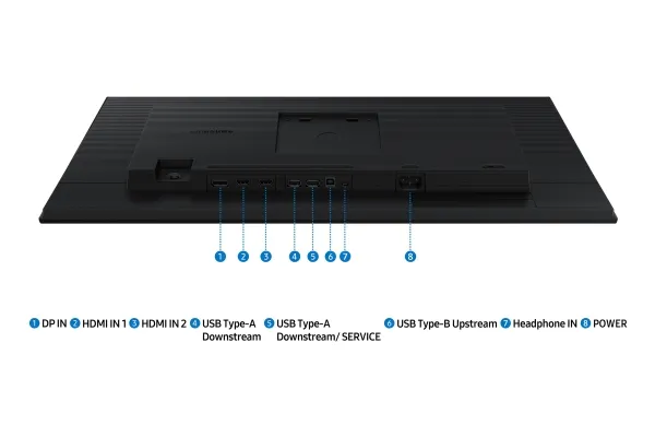 2 x HDMI DisplayPort 1.2 (HDCP 1.2) Hovedtelefonstik (mini-jackstik) 2 x USB 2.0 downstream USB 2.0 upstream (Type B)