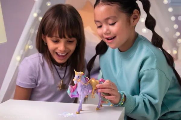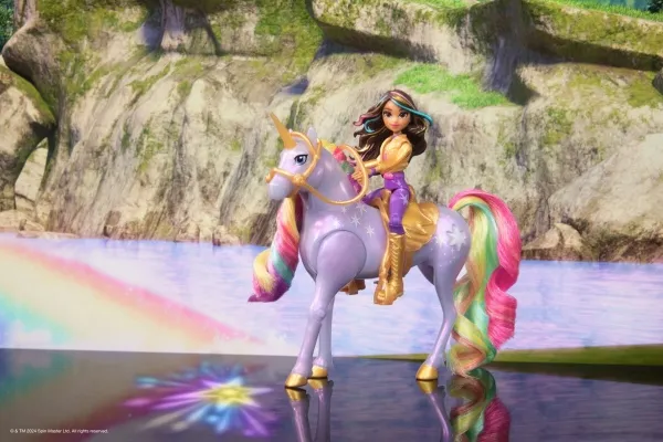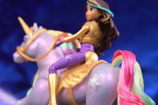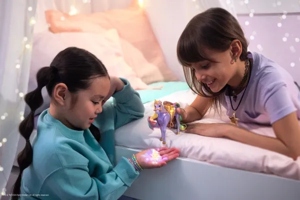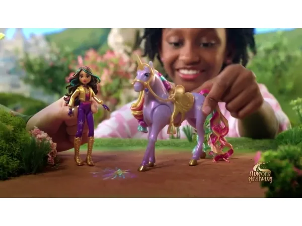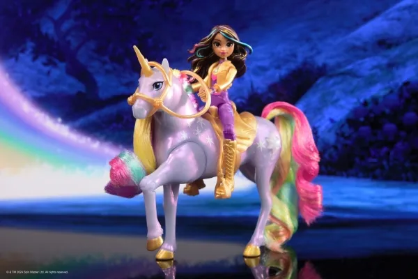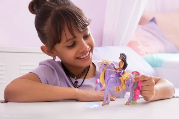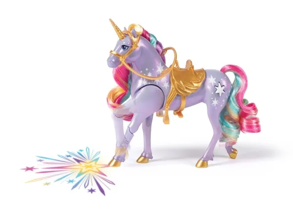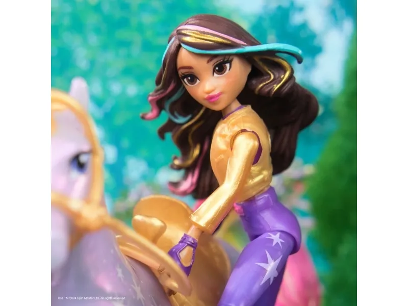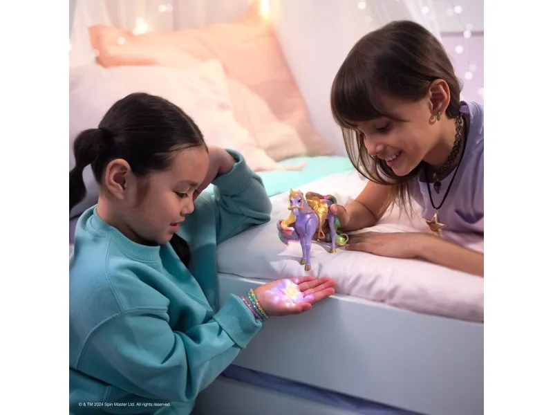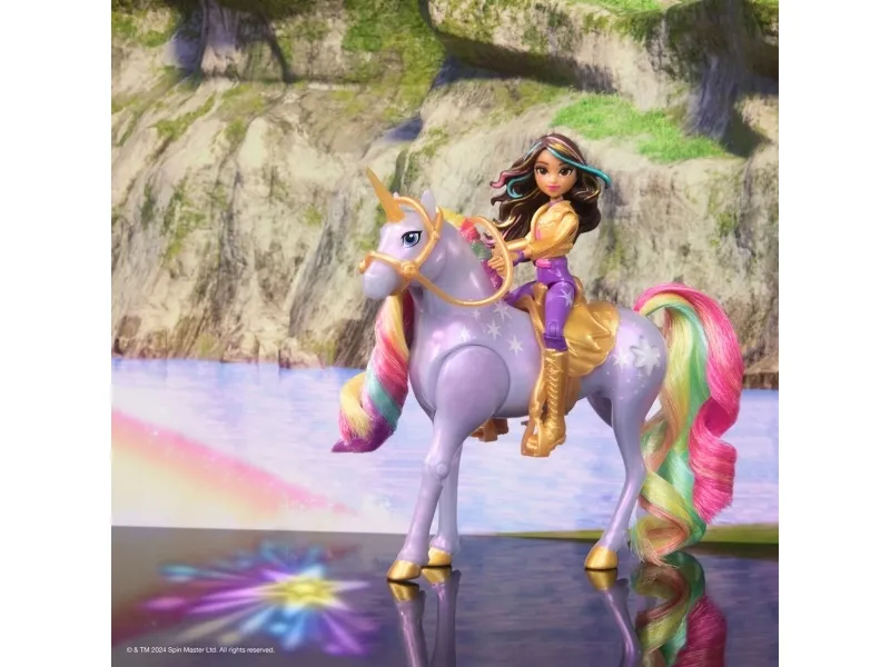 Oplev magien og venskabet fra Enhjørningeakademiet med Sophia & Lysmagi Wildstar legesættet. På enhjørningens side aktiveres det magiske lys med et enkelt tryk på stjerneknappen, mens du genskaber dine yndlingsscener fra serien. Med sin blød regnbuefarvede manke og hale samt magiske lyseffekter på Wildstar, sparker sættet gang i fortryllende fantasileg. Wildstar tramper med sin hov og bruger sin lysmagi til at projicere et regnbue-mønster, præcis som i serien. Sophia kan med sine 7 bevægelige led nemt ride på Wildstar, hvor hun sidder sikkert med det aftagelige hovedtøj og sadeltilbehør. Inspireret af NETFLIX's aninmationsserie og bestseller bøger, hvor venskab blomstrer, bringes figurerne fra Enhjørningeakademiet til live. Oplev og udvid din verden med modedukker, enhjørninge eller de små dukker og legesæt fra Enhjørningeakademiet (sælges separat). Til børn, der elsker enhjørninge, hestelegetøj, dukker og tilbehør, dukkehuse, samleobjekter, plyslegetøj og mere, er legetøj fra Enhjørningeakadamiet en perfekt gave til enhver anledning. Oplev fortryllende Enhjørningeakademieventyr med Sophia og Lysmagi Wildstar legesættet.