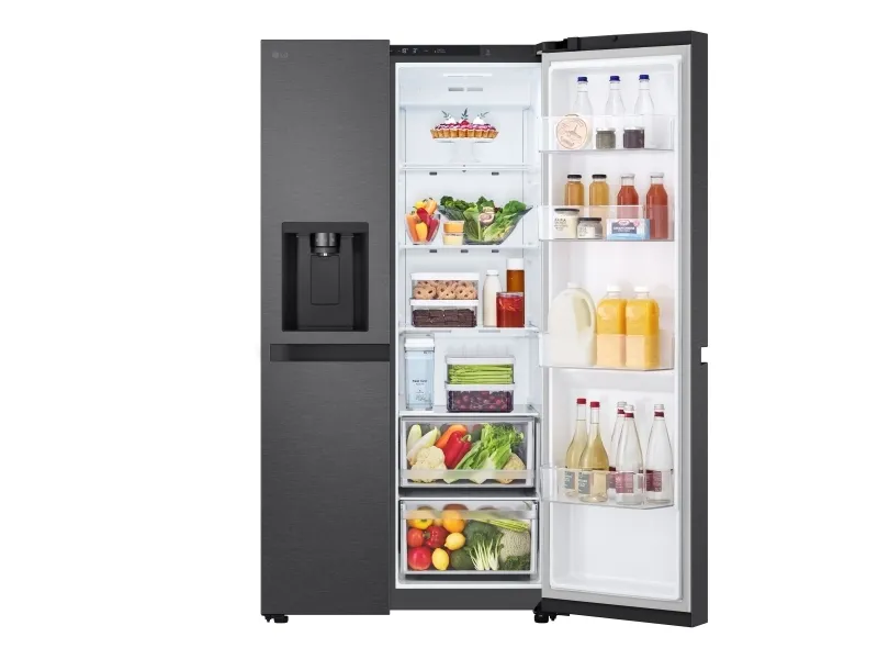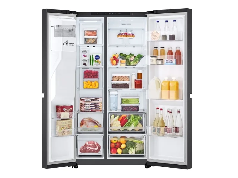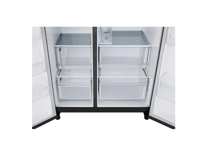 LG GSLC41EPPE. Appliance placement: Freestanding, Product design: American door, Product colour: Black. Total net capacity: 641 L, Climate class: T, Noise emission class: C. Fridge net capacity: 420 L, Lamp type: LED. Freezer net capacity: 221 L, Freezer position: Side-placed, Freezing capacity: 12 kg/24h. Energy efficiency class: E, Annual energy consumption: 348 kWh, Energy efficiency scale: A to G