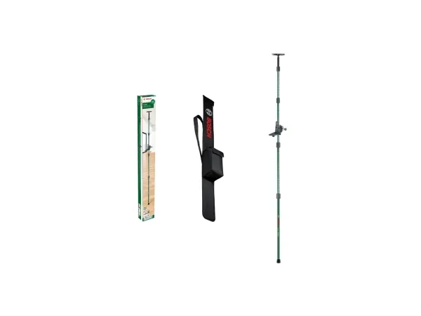 Teleskopstang TP 320 med beskyttelsestaske Teleskopstang TP 320, enkel og fleksibel placering i enhver højde, nem, fleksibel placering af nivelleringsapparater på højder fra 0,1 - 3,2 m, 4 teleskopdele med skruelås til hurtig og nem opstilling, affjedret loftsplade til fleksibel, stabil fastgørelse i enhver vinkel, kompakt klapformat til nem opbevaring, passer til alle nivelleringsapparater med 1/4-gevind, produkt med bæredygtighedskendetegn, yderligere oplysninger se nedenfor, karton, klemme med holder, opbevaringshylster