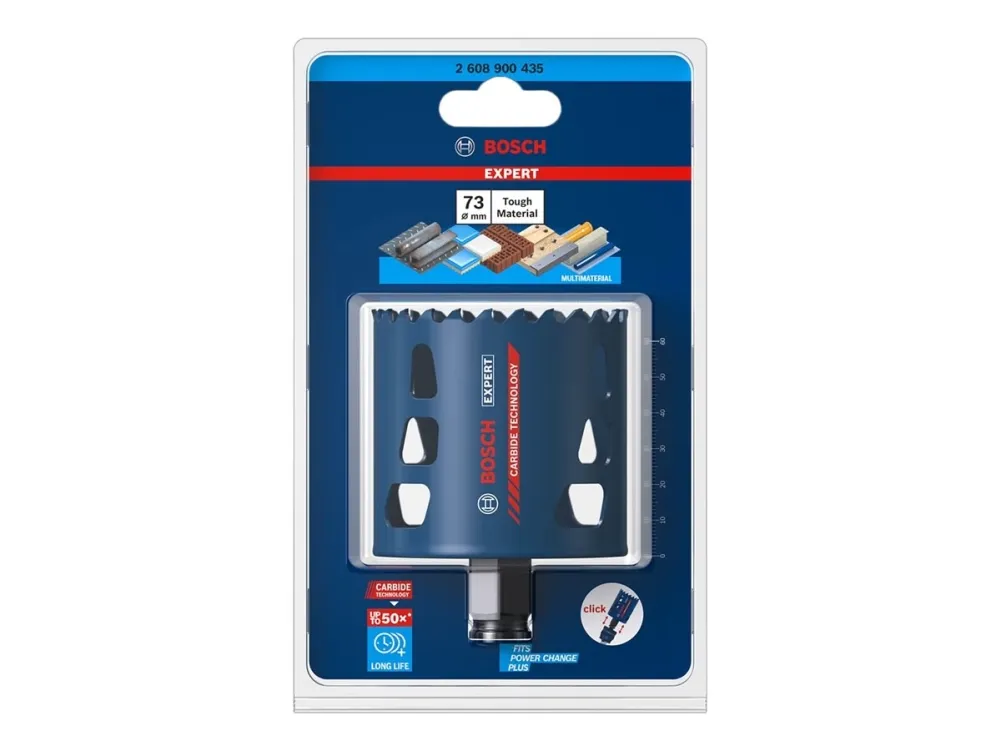 The Bosch EXPERT Tough Material Hole Saw great all-rounder for every tradesman – because half a hole is not even worth half a hole.Bosch Expert 2 608 900 435. Type: Single, Suitable for: Drill, Suitable for materials: Brick, Hardwood, Plastic, Soft ceramic wall tile, Stainless steel. Diameter: 7.3 cm. Number of pieces: 1 pc(s), Number of hole saws: 1 pc(s)