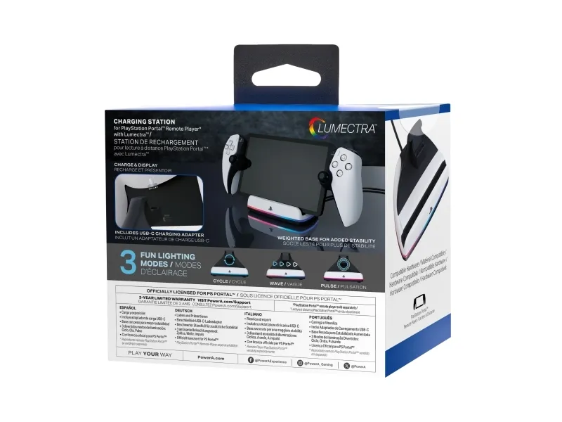 ACCO Brands PowerA-opladningsstand er til den bærbare spilkonsol Sony PlayStation Portal. Med en længde på 1,5 m sikrer dette USB-C-kabel praktiske tilslutninger til opladning. Det har RGB-belysning, der tilføjer et levende touch til dit gaming-setup, samtidig med at det oplader din enhed effektivt. Opladningsstativet leverer en spænding på 5 V og en maksimal strøm på 3 A, hvilket gør det pålideligt til strømforsyning af din enhed. Opladningsstativet overholder standarder som EMC, WEEE, RCM og UKCA og opfylder dermed vigtige lovkrav, så du kan bruge det med ro i sindet.