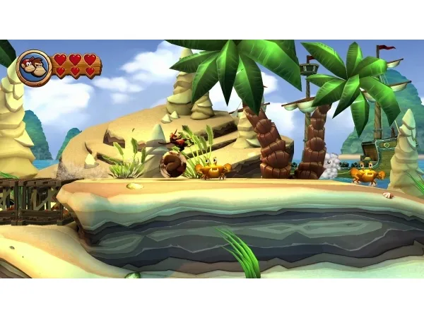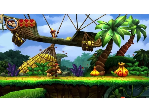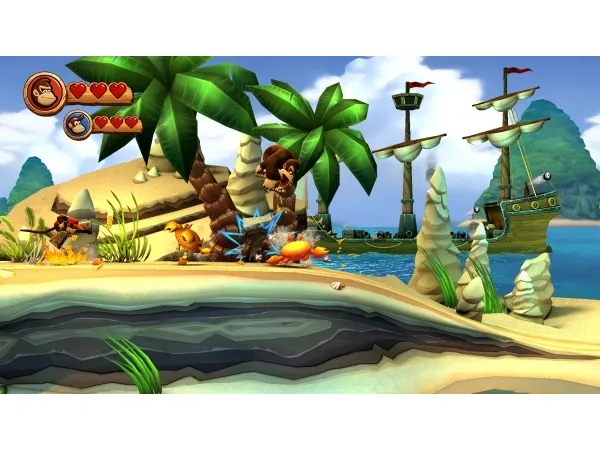 Hjælp Donkey Kong og Diddy Kong med at få fat i deres dyrebare bananskat fra den skurkagtige Tiki Tak-stamme! Tramp på fjender, skyd gennem tønder og kør på raketter og minevogne (og endda på næsehornet Rambi) i 80 baner fordelt på ni verdener.