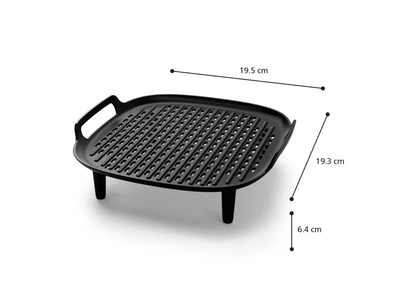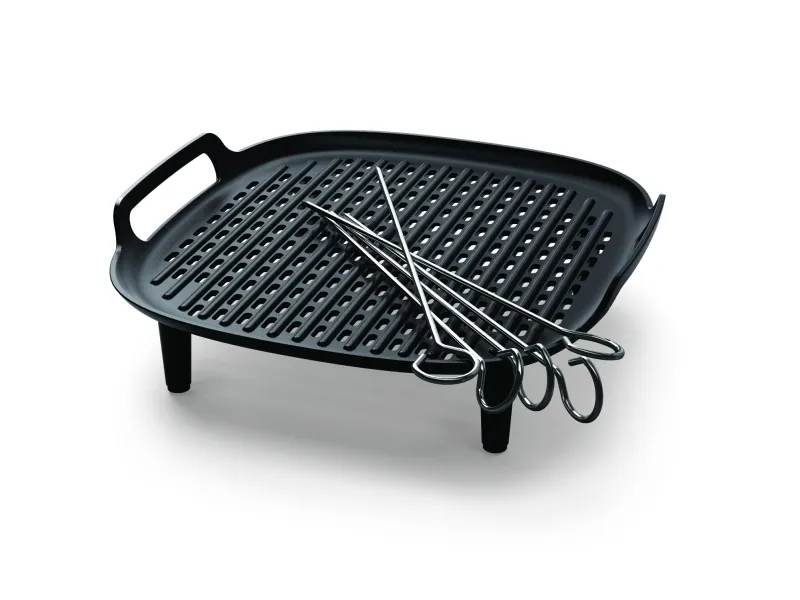 Perfectly grilled meat and vegetables all in one Take your Airfryer to the next level with our Grill Set for Airfryer 6.2 L. Master delicious grilled recipes. Prepare perfectly grilled meat and tasty vegetables in a quick and easy way.Philips Accessory for Airfryer 6.2 L. Type: Grill bottom & skewers, Brand compatibility: Philips, Compatibility: NA130, NA230, NA231, NA330, NA331, HD9270, HD9280. Width: 194 mm, Depth: 196 mm, Height: 64 mm. Package width: 198 mm, Package depth: 203 mm, Package height: 72 mm. Country of origin: China. Quantity per pack: 1 pc(s)