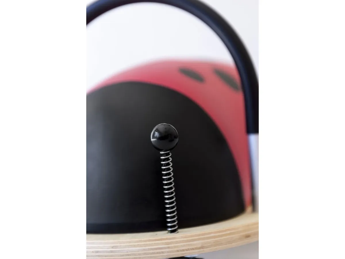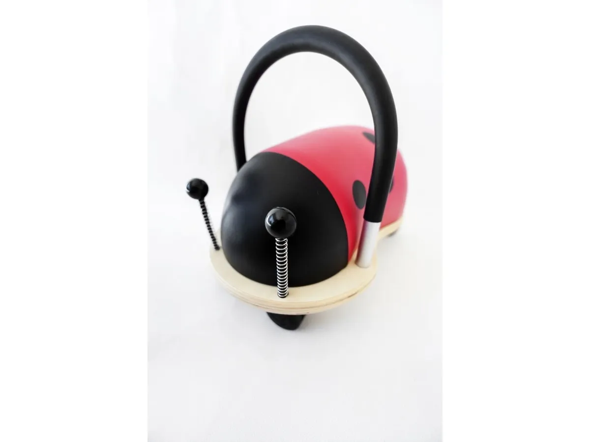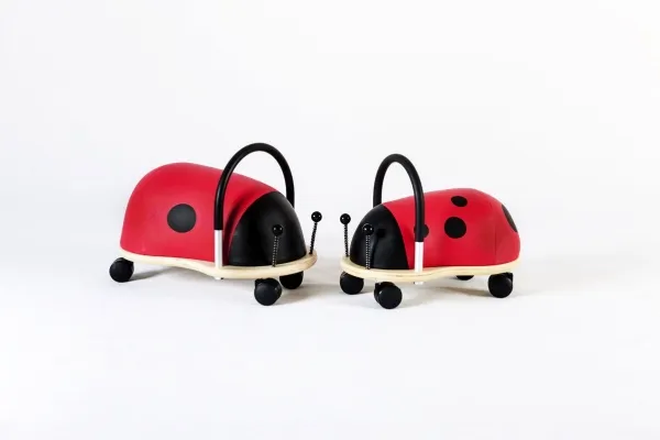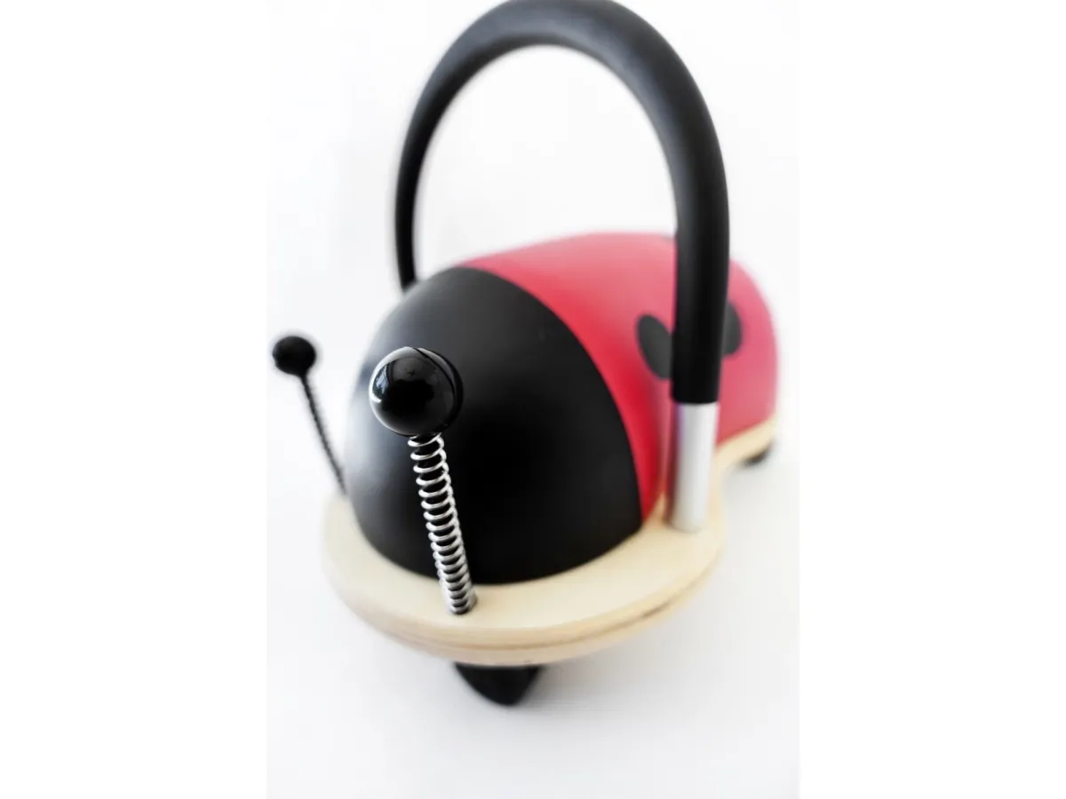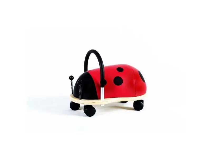 Den lille model, af den prisvindende originale håndlavede Wheely Bug Mariehøne, er en fantastisk skubber/gåbil. Det unikke ved Wheely Bug fremfor lignende legetøj er, at hjulene kan dreje rundt i 360 grader, så der altid kan være fuld fart på legen med den lille mariehøne. Dette udfordrer blandt andet barnets grovmotorik, afstandsbedømmelse og koordination. Wheely Bug'en er ergonomisk rundet, så den er behagelig for barnet at sidde på. Desuden har Wheely Bug et lavt tyngdepunkt, hvilket gør det svært for barnet at vælte med den. Udført i lærketræ med håndtag i rustfrit aluminium, nylonhjul og miljøvenligt Polyuretan. Mål: L: 36 x B: 23 cm. Siddehøjden er 20 cm. Anbefalet max vægt: 25 kg. Beregnet til børn fra 1 til ca. 1½ år.